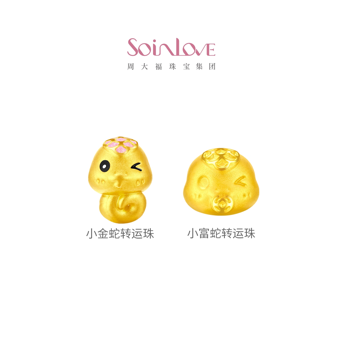 Chow Tai Fook SOINLOVE "Cute Pet" Little Golden Snake, Little Rich Snake, Zodiac Snake, Golden Pure Gold Transfer Beads