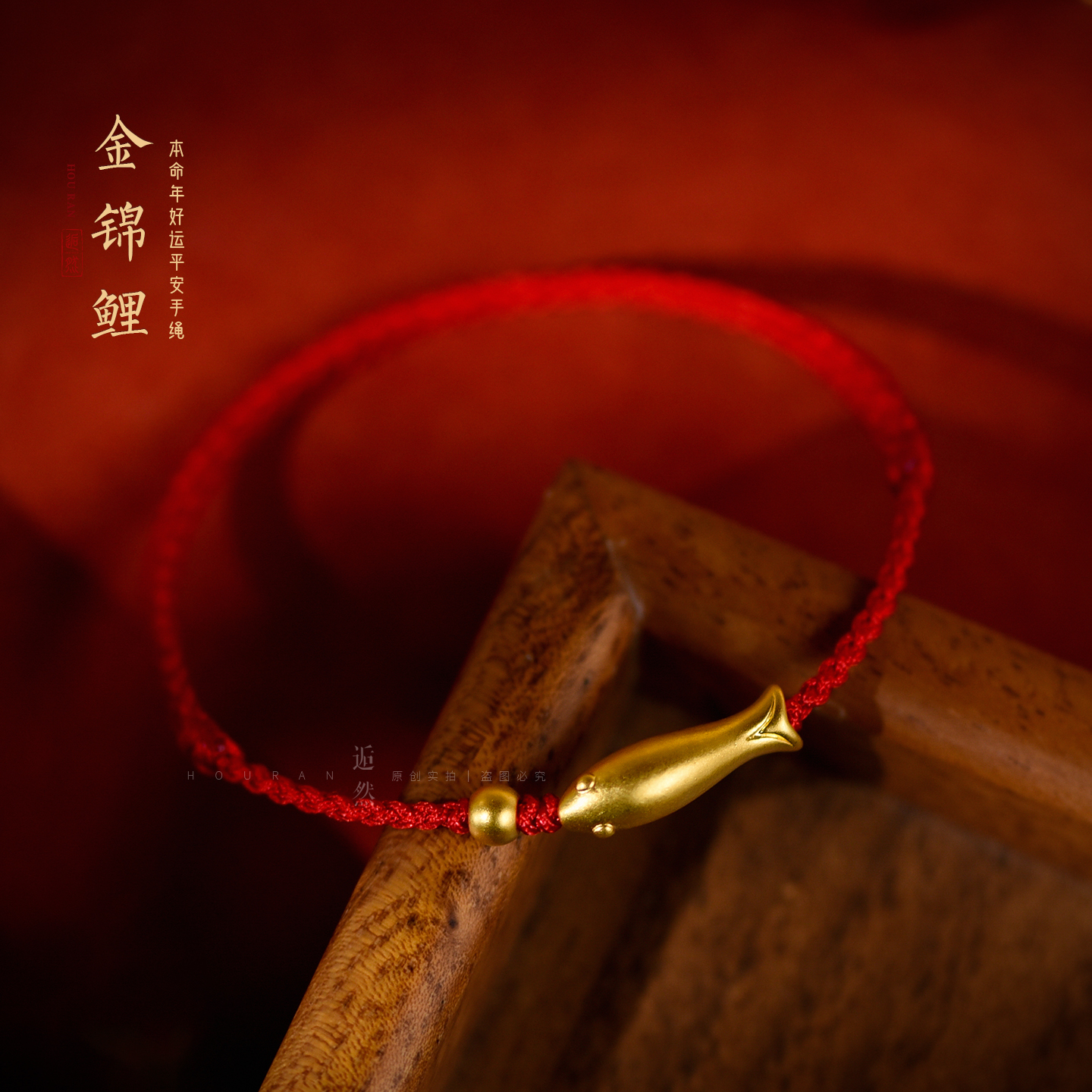 999 full gold small fish, gold shore koi bracelet, female male natal year, good luck, woven red bracelet, Year of the Horse ankle