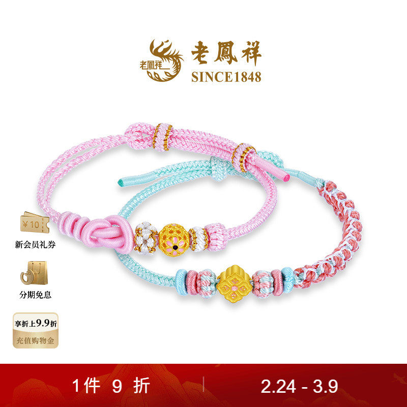Lao Fengxiang flowers bloom to flowers gilt gold pure gold bracelet bracelet braiding festival 38 goddess day gifts