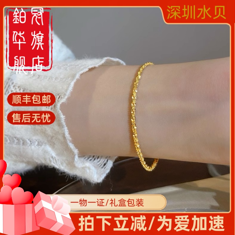 Shenzhen Shuibei gold sparkling bracelet light luxury high-end girlfriend 999 pure gold hand jewelry women's gift