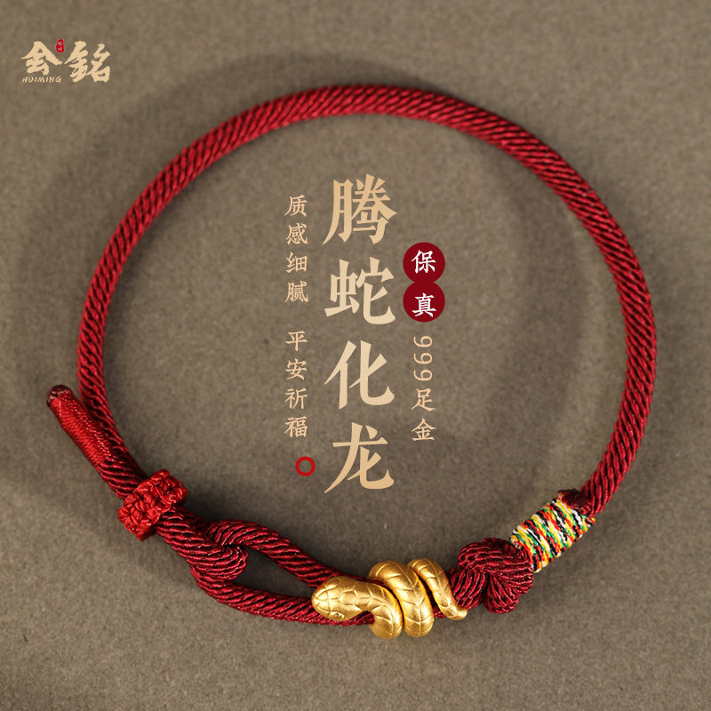 Huiming Handicraft Workshop 999 Foot Golden Snake Natal Year Red Rope Bracelet Women 24K Gold Snake Weaving Good Luck Bracelet Men