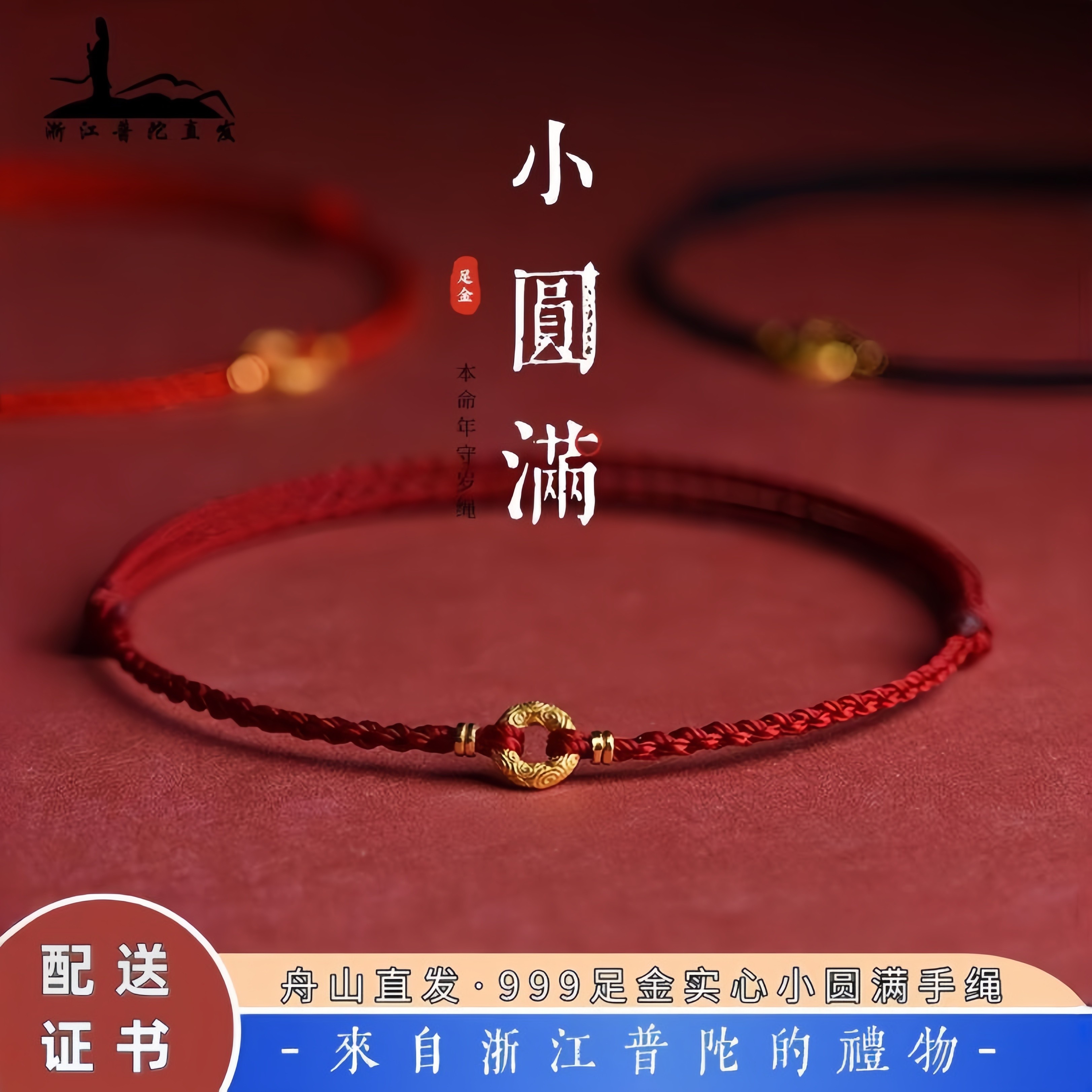 Putuo Mountain Miaohai 999 pure gold natal year immediately has money red rope bracelet men's women's transfer beads safe weaving