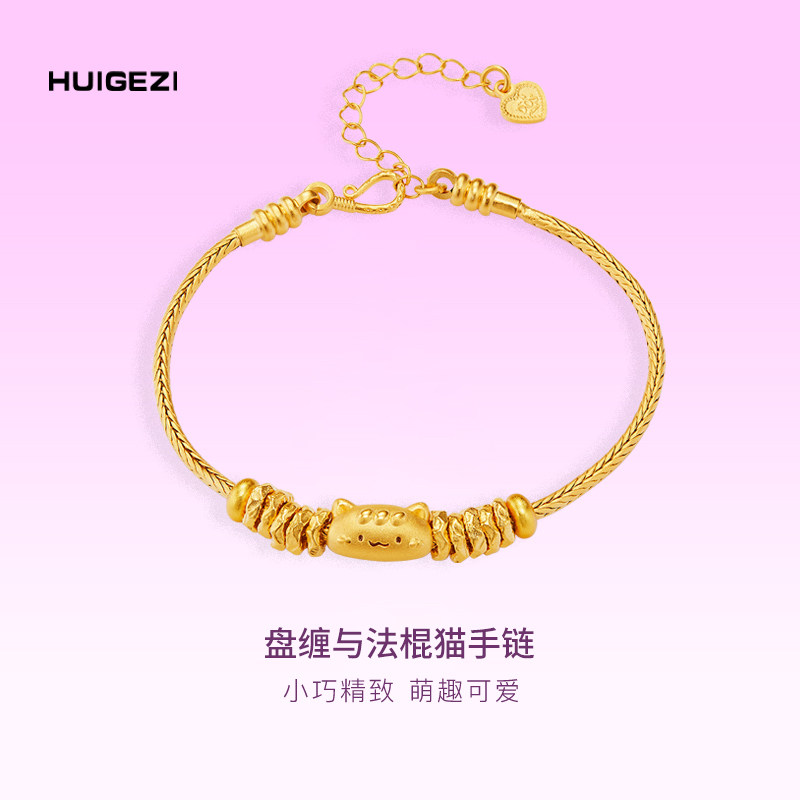 HUIGEZI gold baguette cat bracelet coiled with fashionable gold jewelry Exquisite 999 pure gold bracelet for girlfriend gift