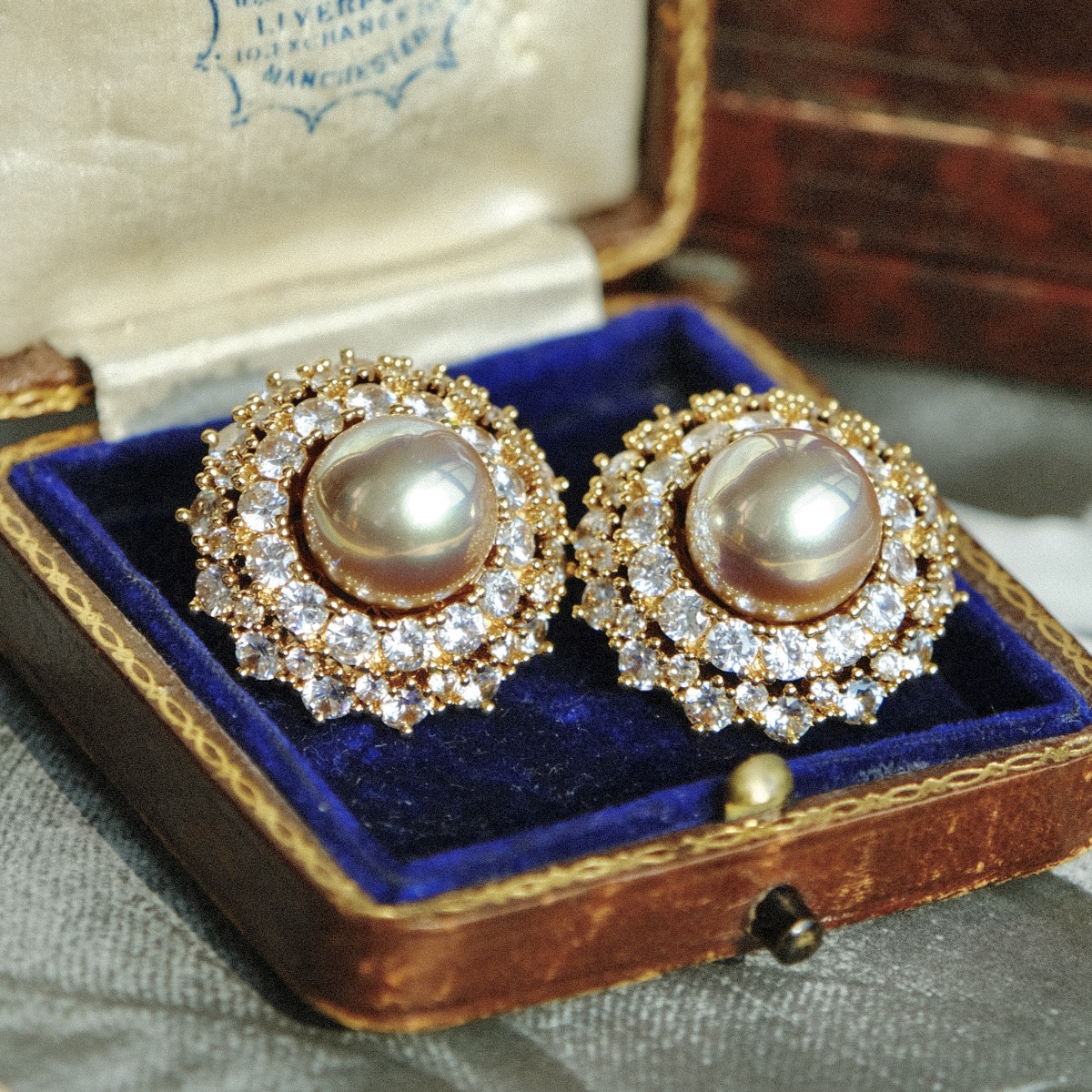 "Rhine" French elegant retro high-end shining banquet zircon olive green stud earrings/ear clip girl