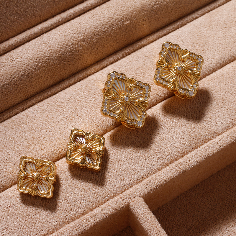 Those who know the goods are coming! opera stud earrings small white fritillary carnelian black agate plated 18K gold plated earrings
