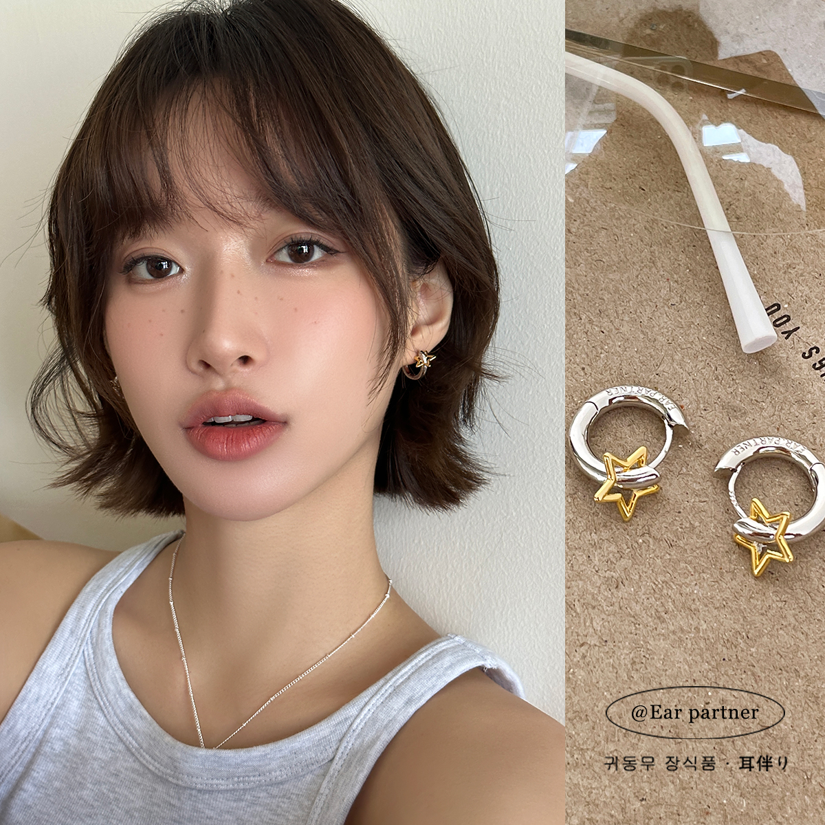 Original contrasting star earrings, women's niche design, high-end sense of 925 sterling silver pin earrings, unique cold wind earrings