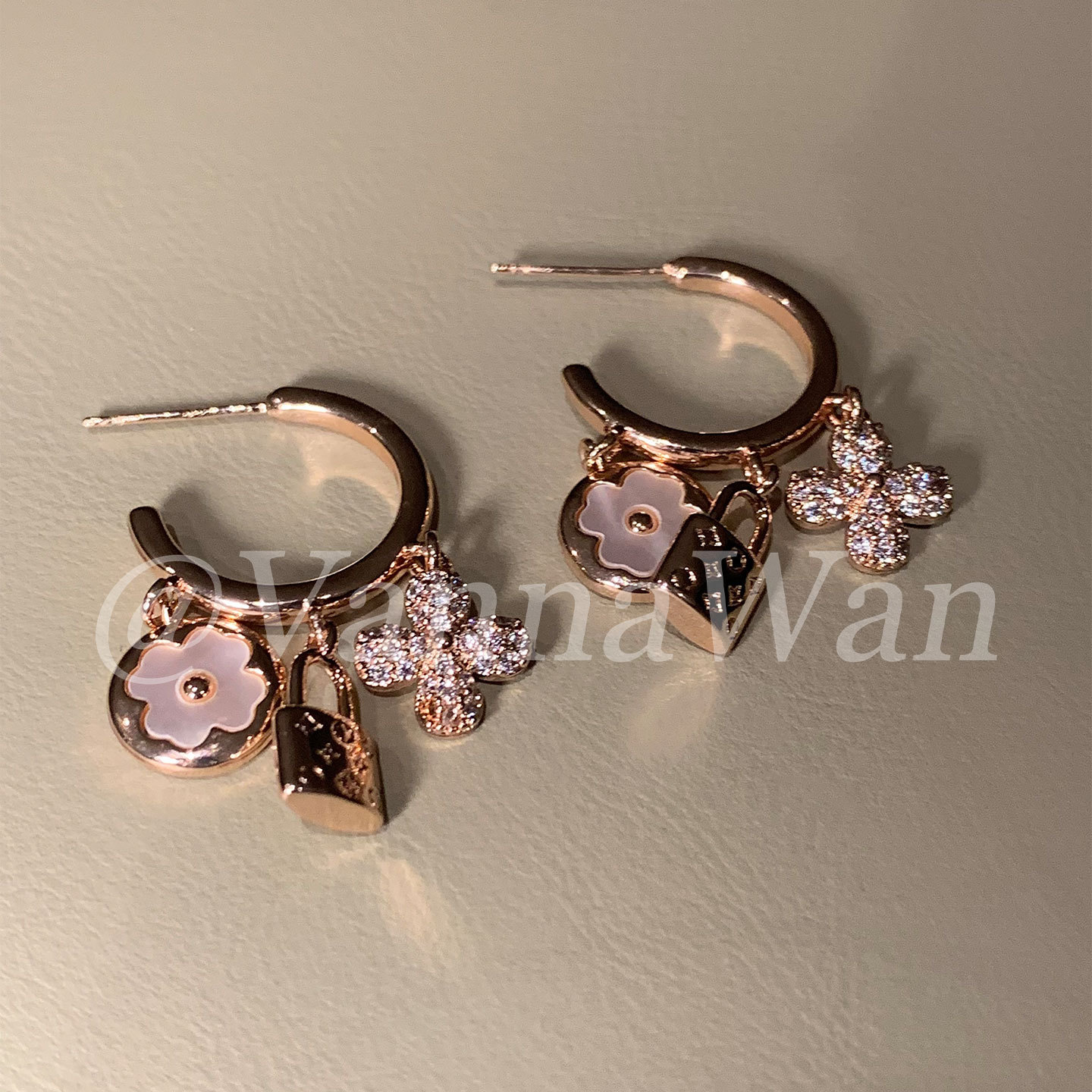 VanWan [buyer's version] old fa ~ vintage multi-pendant tassel earrings female white shell lock glitter diamond flower earrings