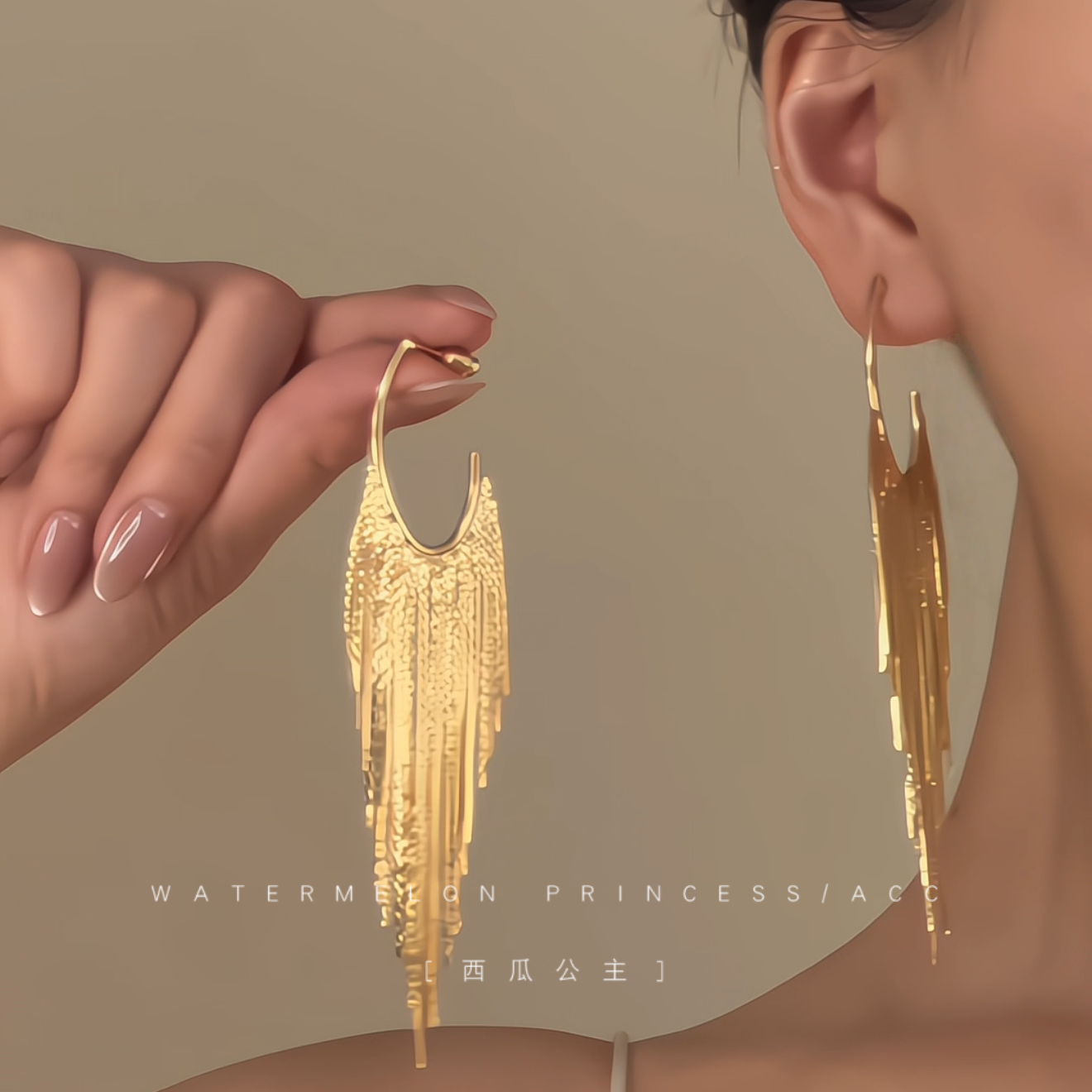 "Goddess of Light Luxury" light luxury style long tassel earrings, women's high-end European and American dinner dresses, gold earrings