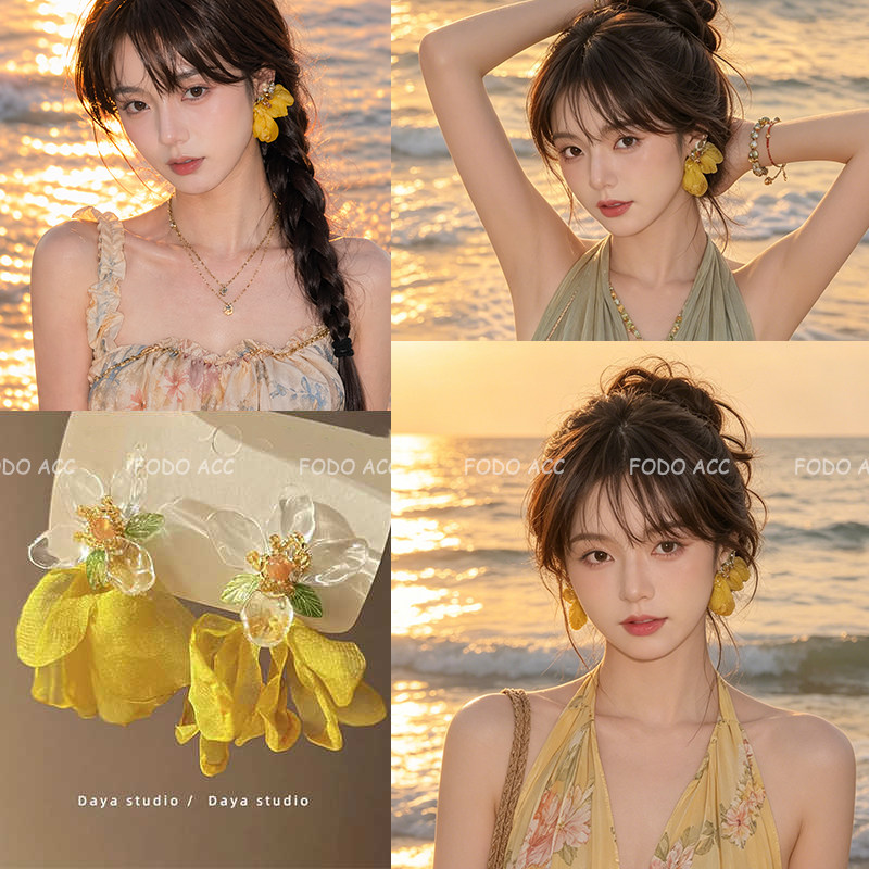 "Moon White Cherry Blossom Fall" white flower earrings 2026 new explosive super fairy earrings women's French tassel stud earrings