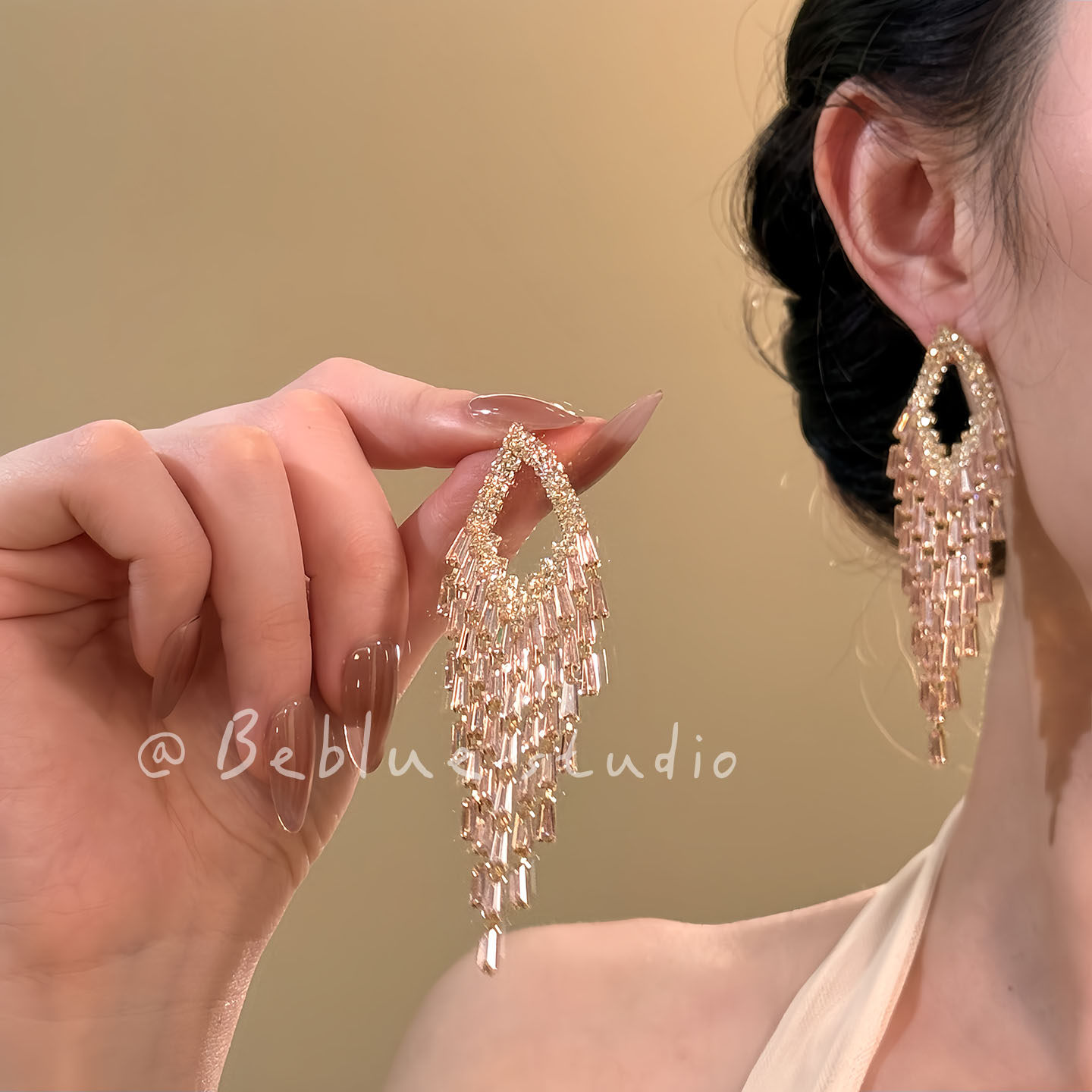 Dinner focus ~ super shiny diamond powder zircon tassel earrings, temperament high-end dress earrings, unique earrings, earrings