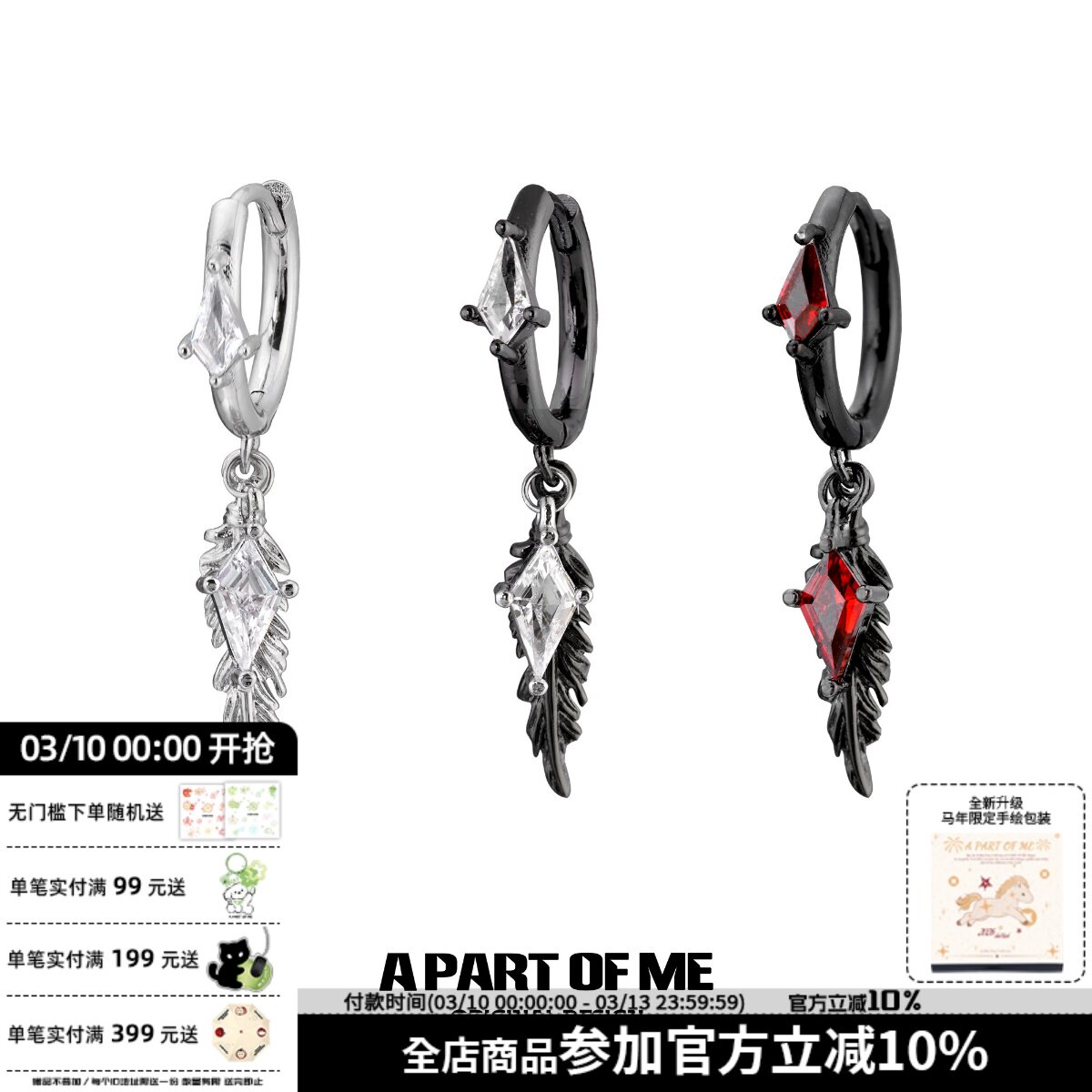 Super cool original design feather zircon small earrings niche high-end simple earrings cool earrings personality men and women
