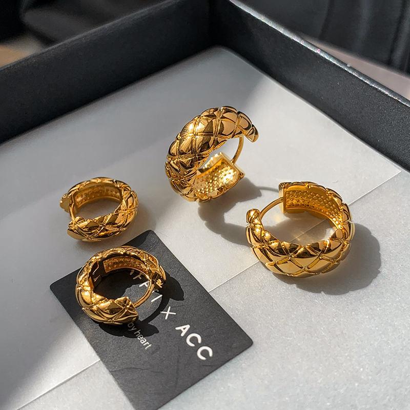 European and American metal gold silver diamond check large hoop earrings women's light luxury high-end temperament earrings earrings earrings earrings