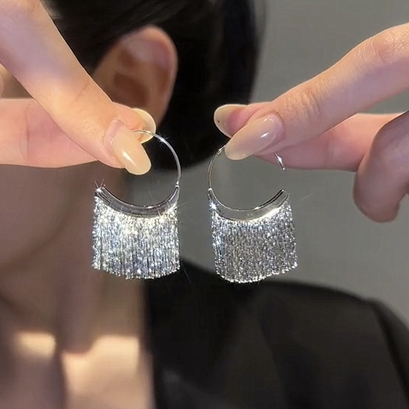 Metal heavy industry cold wind exaggerated French tassel earrings European and American design sense plated 18k gold exquisite high-end retro