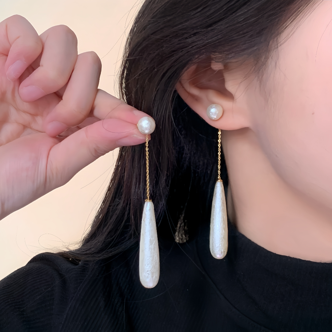French elegance ~ long textured pearl drop earrings female niche design high-end stud earrings vintage earrings