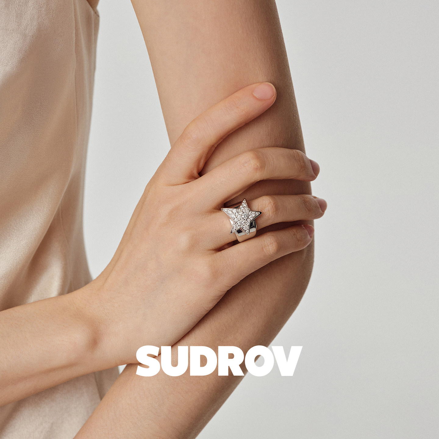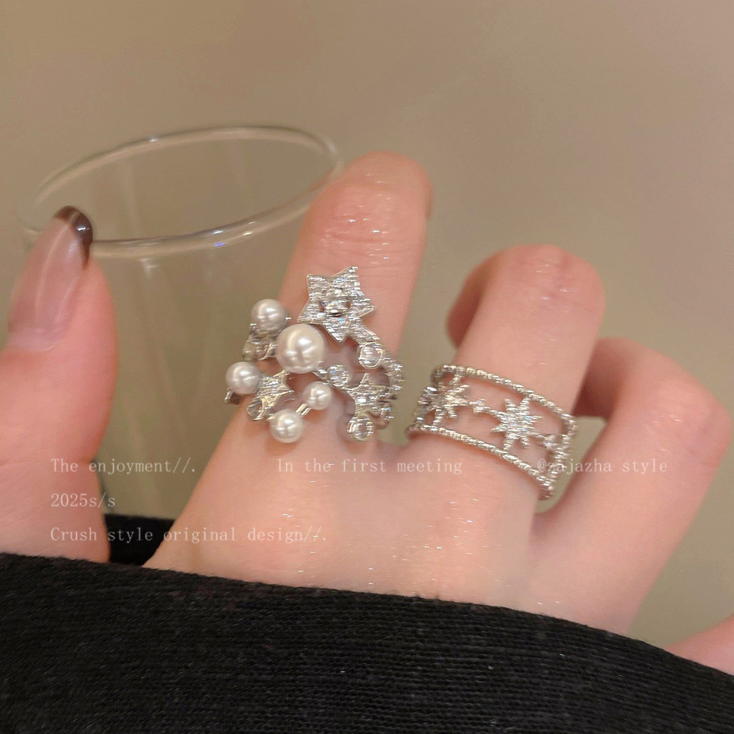 Baby's breath zircon opening ring women's niche design high-end index ring thick hand exaggerated stacking ring