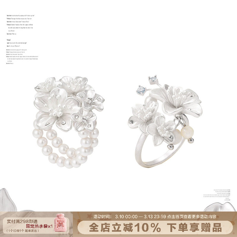 【Star Same】SUMIYAKI Night Cherry Blossom Series Cherry Blossom Multi-layer Ring Flower Cluster Design High-end Sense Ring