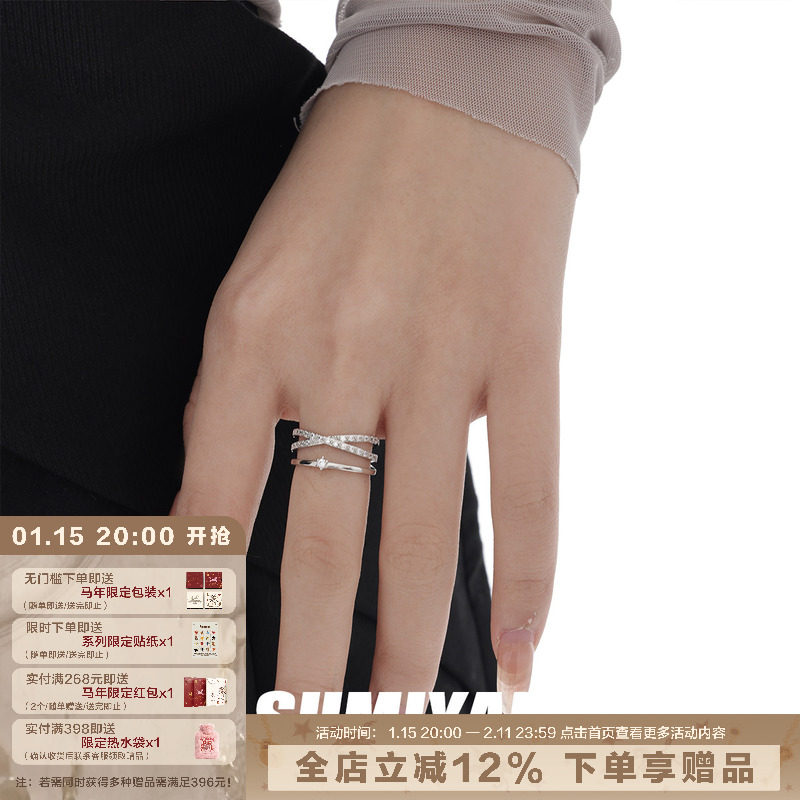 SUMIYAKI original silver cross zircon double ring light luxury niche fashion plain ring couple pair ring
