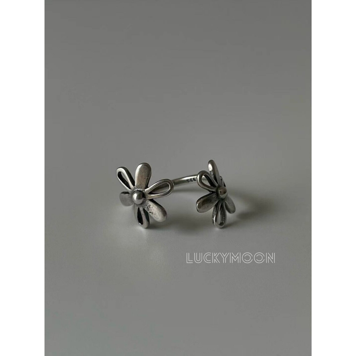 Goddess Day Present Vintage Distressed Openwork Daisy Open Ring S925 All-Over Sterling Silver R289