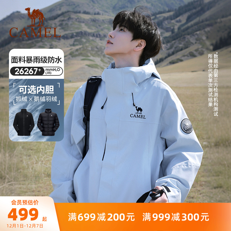 Camel outdoor rain god jacket men's 3-in-1 down jacket winter waterproof jacket women's three-proof tourist mountaineering suit