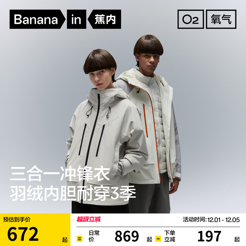 Banana Oxygen 502Proof Pro Unisex 3-in-1 jacket for men and women, down windproof waterproof warm jacket