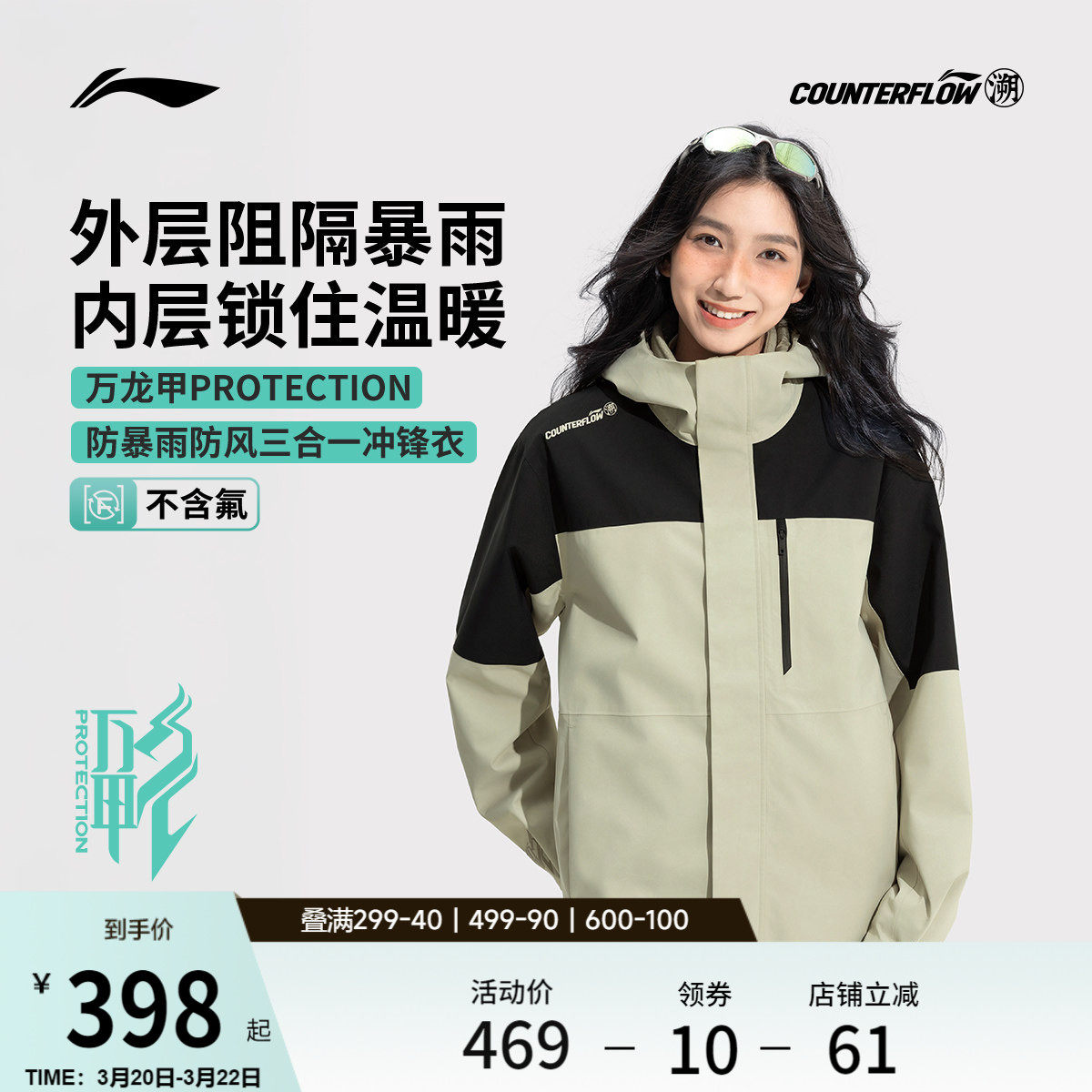 Li Ning outdoor CF trace丨Wanlong armor three-in-one jacket men's and women's fleece thickened mountaineering hardshell windproof jacket