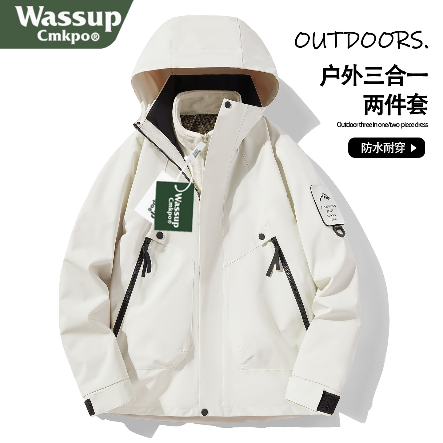 WASSUP CMKPO Jacket Women's 3-in-1 New Jacket Men's Outdoor Windproof Waterproof Mountaineering Suit Two-Piece Set