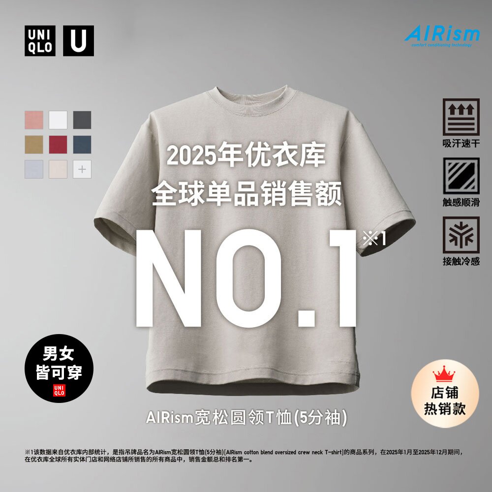 Uniqlo collaboration men's and women's coolness master T AIRism loose crew neck T-shirt 5-quarter sleeve short sleeve 482295