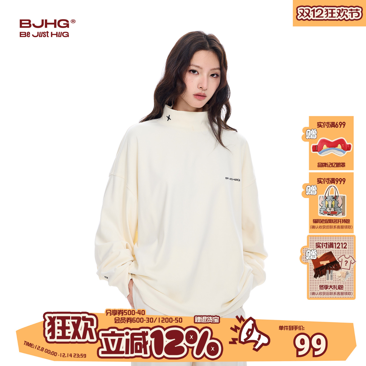 BJHG recklessly fluffy semi-turtleneck base shirt sweatshirt men's autumn and winter with American loose long-sleeved T-shirts
