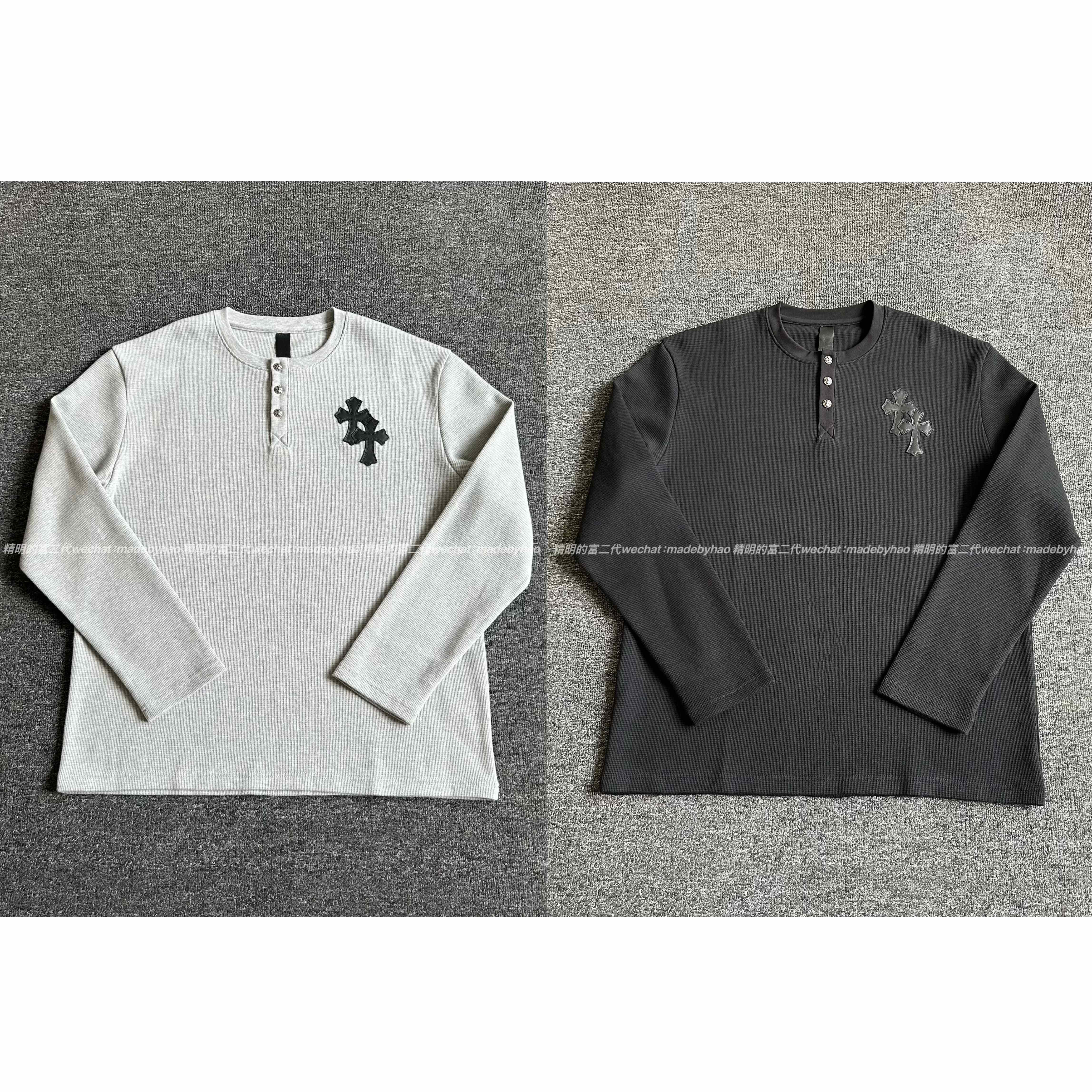 [Ceiling top 925 silver buckle] 25SS cross patchwork waffle Henry collar long-sleeved sweatshirt for men and women