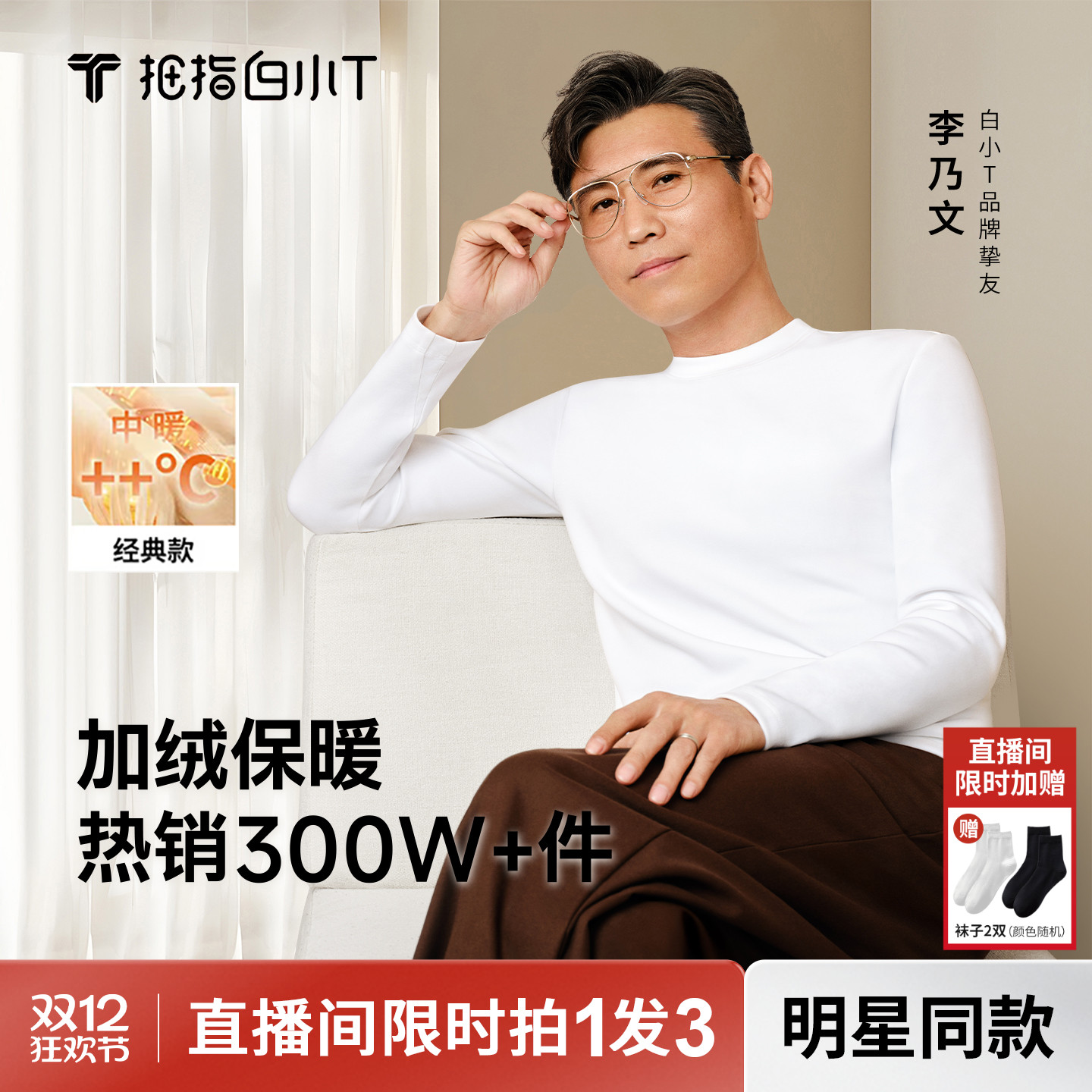 【Wang Yibo Same Style】Banana Hot Leather 502++++ Men's Temperature-Locking Crew Neck Long Sleeve Functional T-Shirt Warm Top