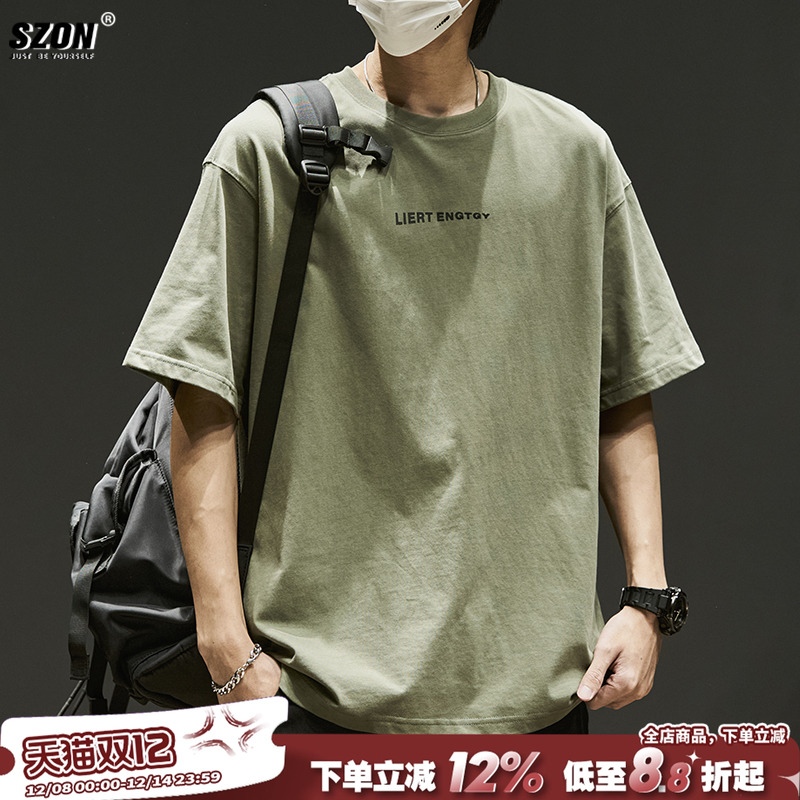 Short sleeve T-shirt men's Japanese simple cotton heavy men's loose trend versatile American top summer thin style