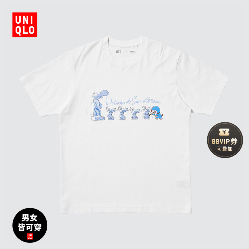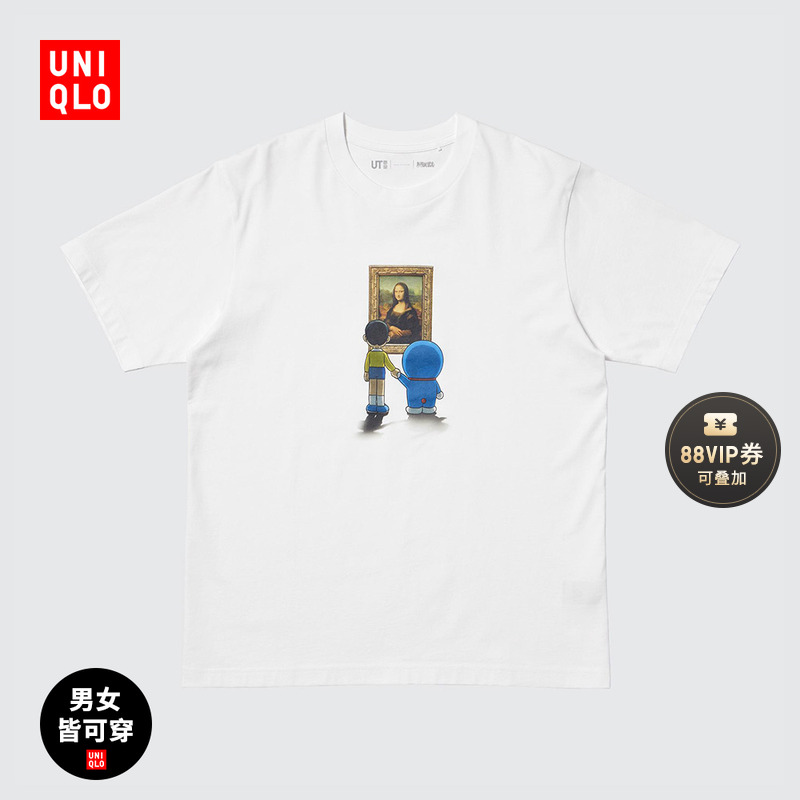Uniqlo Men's Women's UT Doraemon Encounters Louvre Print Short Sleeve T-Shirt 474457