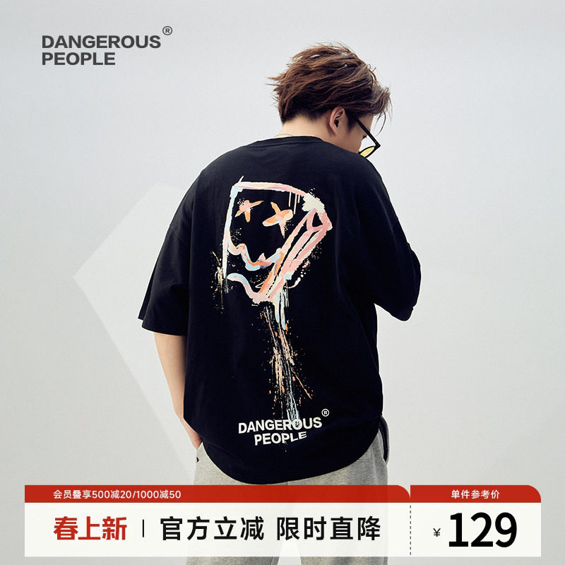 Dangerous people Xue Zhiqian dsp ink splashing paper bag people short sleeve T-shirt men's loose trend half sleeve body shirt