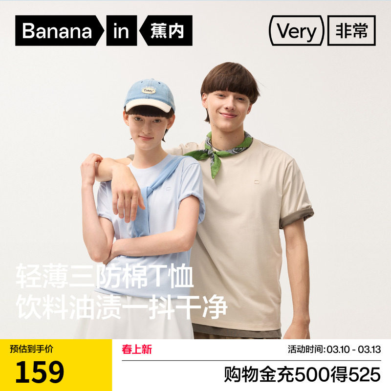 Banana very 502 Regular men's and women's couple three-proof light and light cotton feel breathable casual short-sleeved white T-shirt