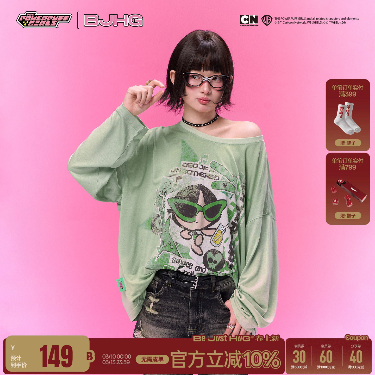 BJHG recklessly long-sleeved T-shirt women's new slanted shoulder cover-up pre-spring top