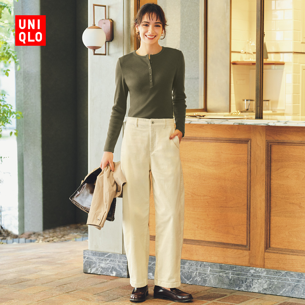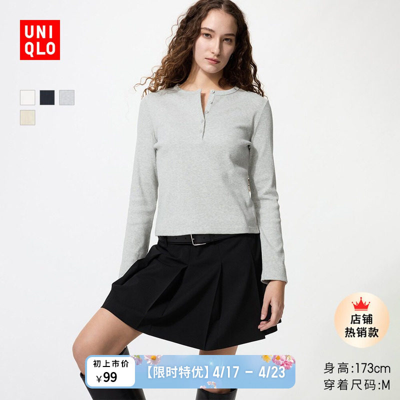 Uniqlo Women's Ribbed Henry Collar T-Shirt/Long Sleeve Slim Short Inner Bottom 479591 487908