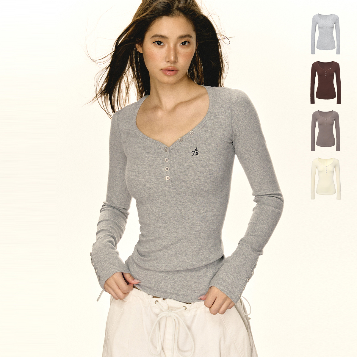 Banana Henry shirt women's long-sleeved T-shirt V-neck autumn and winter slim warm low-neck base shirt with a half-open collar white top