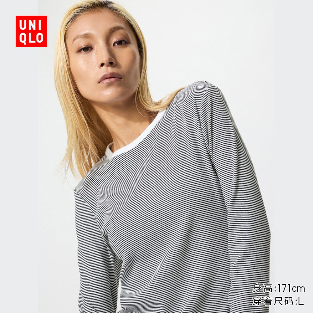 Uniqlo Women's Soft Ribbed Striped Crew Neck T-Shirt/Long Sleeve 483536
