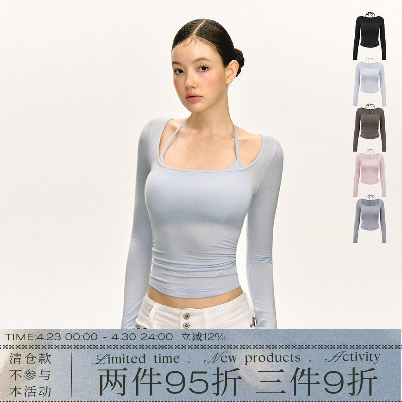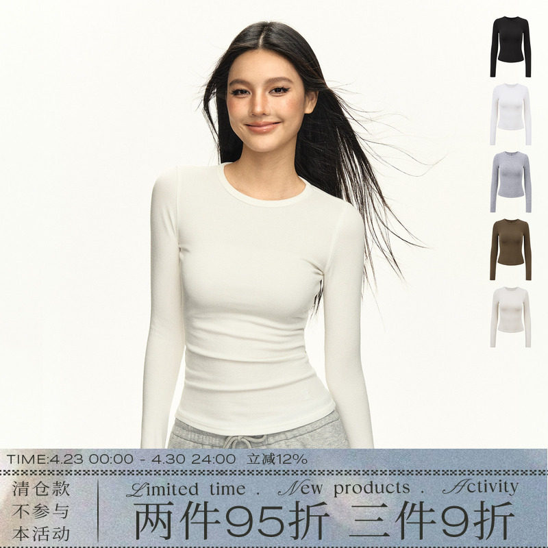 Ariseism American Retro Basic Long Sleeve T-Shirt Women's 2026 Spring New Slim Top with Underwear Inside