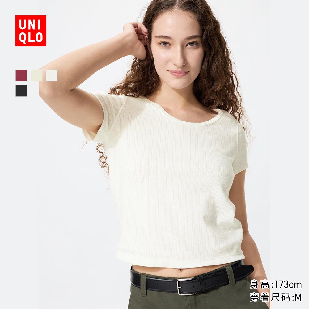 Uniqlo Women's Jacquard Ribbed Short T-Shirt/Short Sleeve 26 Spring/Summer New 485025
