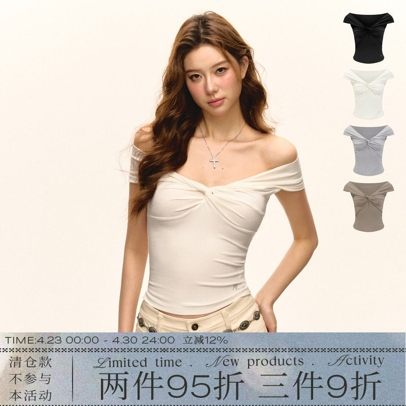 Ariseism American Vintage Design Off-the-Shoulder Short Sleeve T-Shirt Women's Summer New Slim One-Shoulder Top