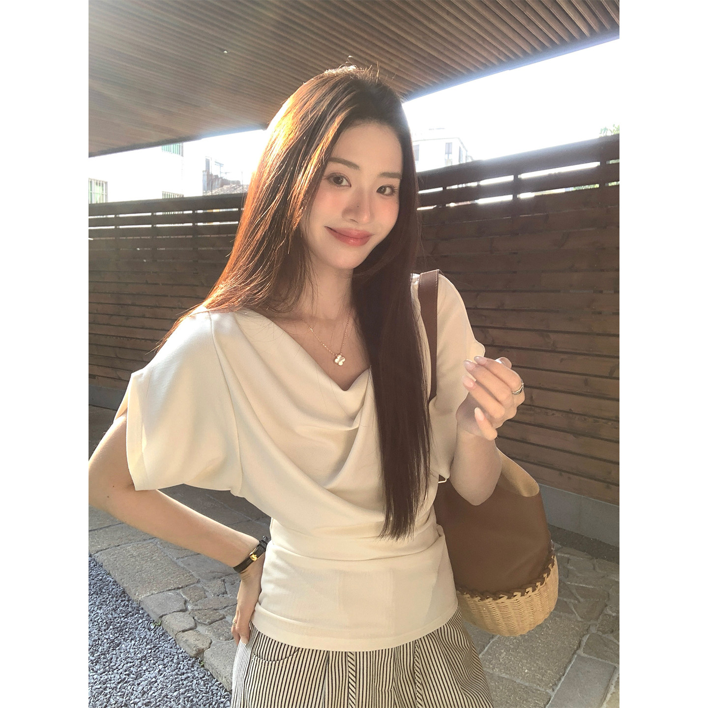 In early summer 2025, wear a new square neck straight-shoulder short-sleeved T-shirt for women, unique, beautiful, super good-looking, small shirts, short tops