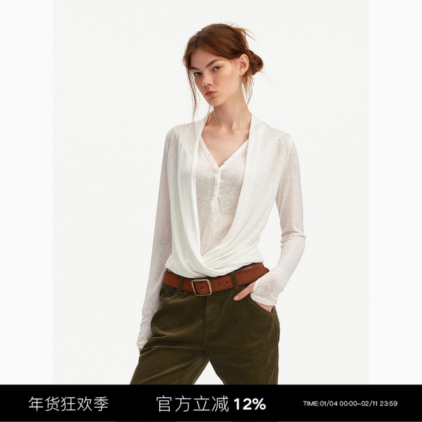 3RD fake two cross-draped V-neck Tencel linen base shirts slim long-sleeved T-shirts