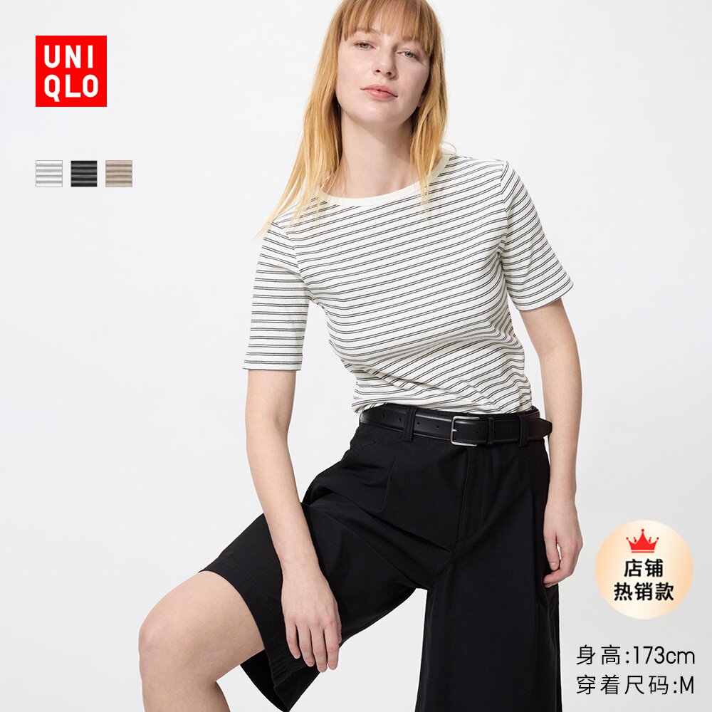 Uniqlo Women's Ribbed Henry Collar T-Shirt/Long Sleeve Slim Short Inner Bottom 479591 487908