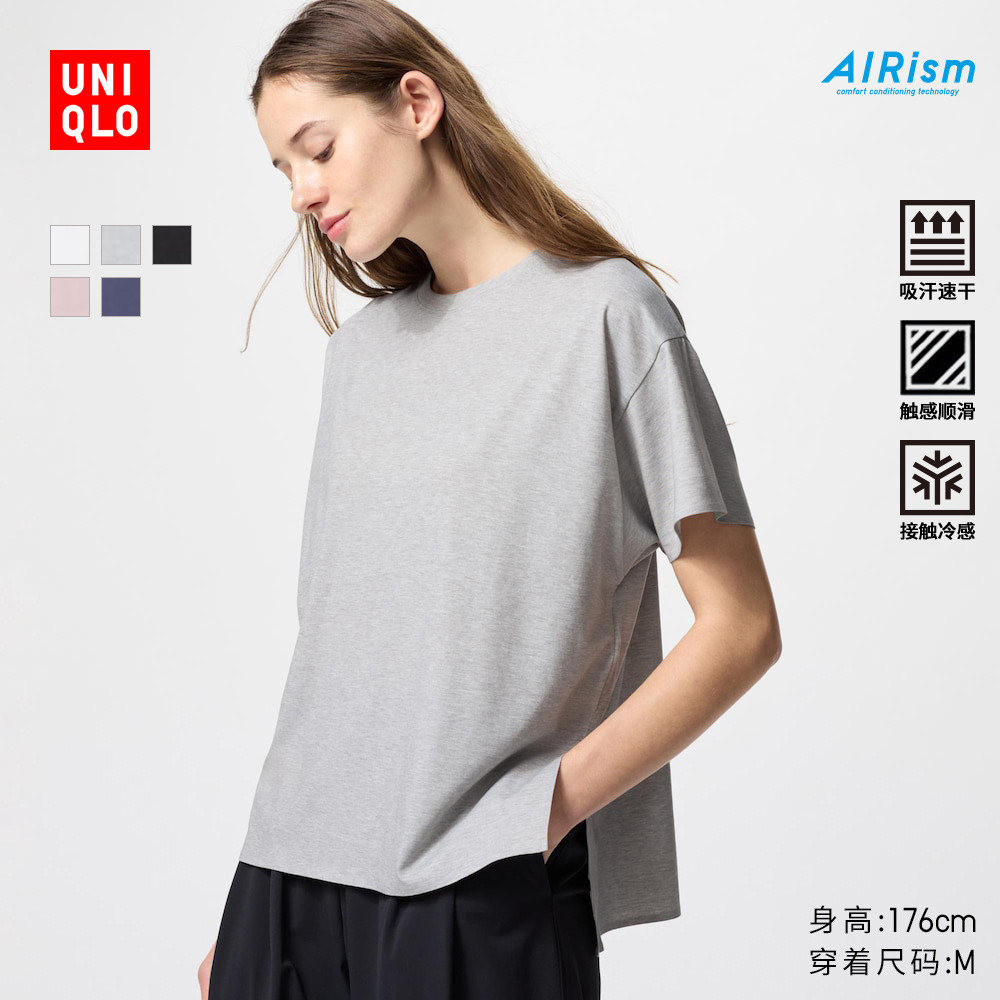 Uniqlo women's AIRism T-shirt/short-sleeved loose top 474415