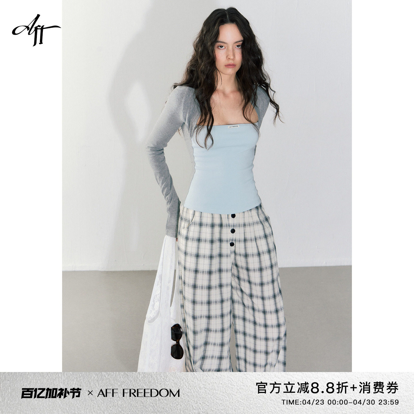 AFFFREEDOM Korean contrasting shoulder bandeau fake two pieces of long-sleeved loose T-shirt top