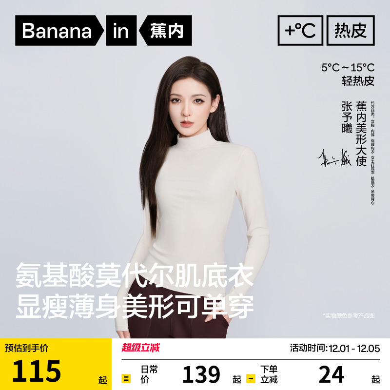 【Zhao Lusi's same style】Banana hot leather 5 series skin base shirt women's base shirt with high neck thermal underwear autumn clothes