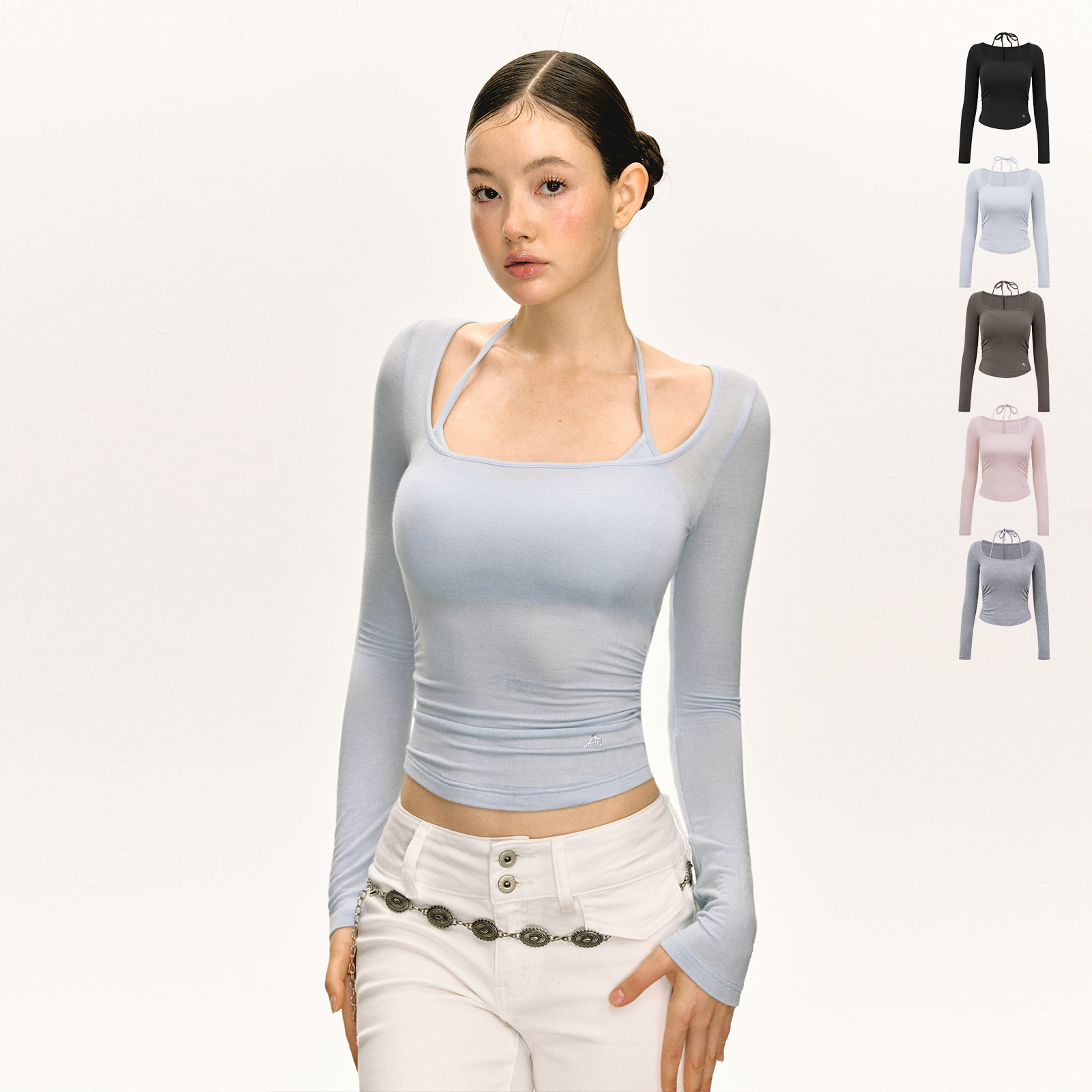 Aaisup white square neck long sleeve T-shirt women's autumn and winter design sense slim and slim inner top versatile base layer