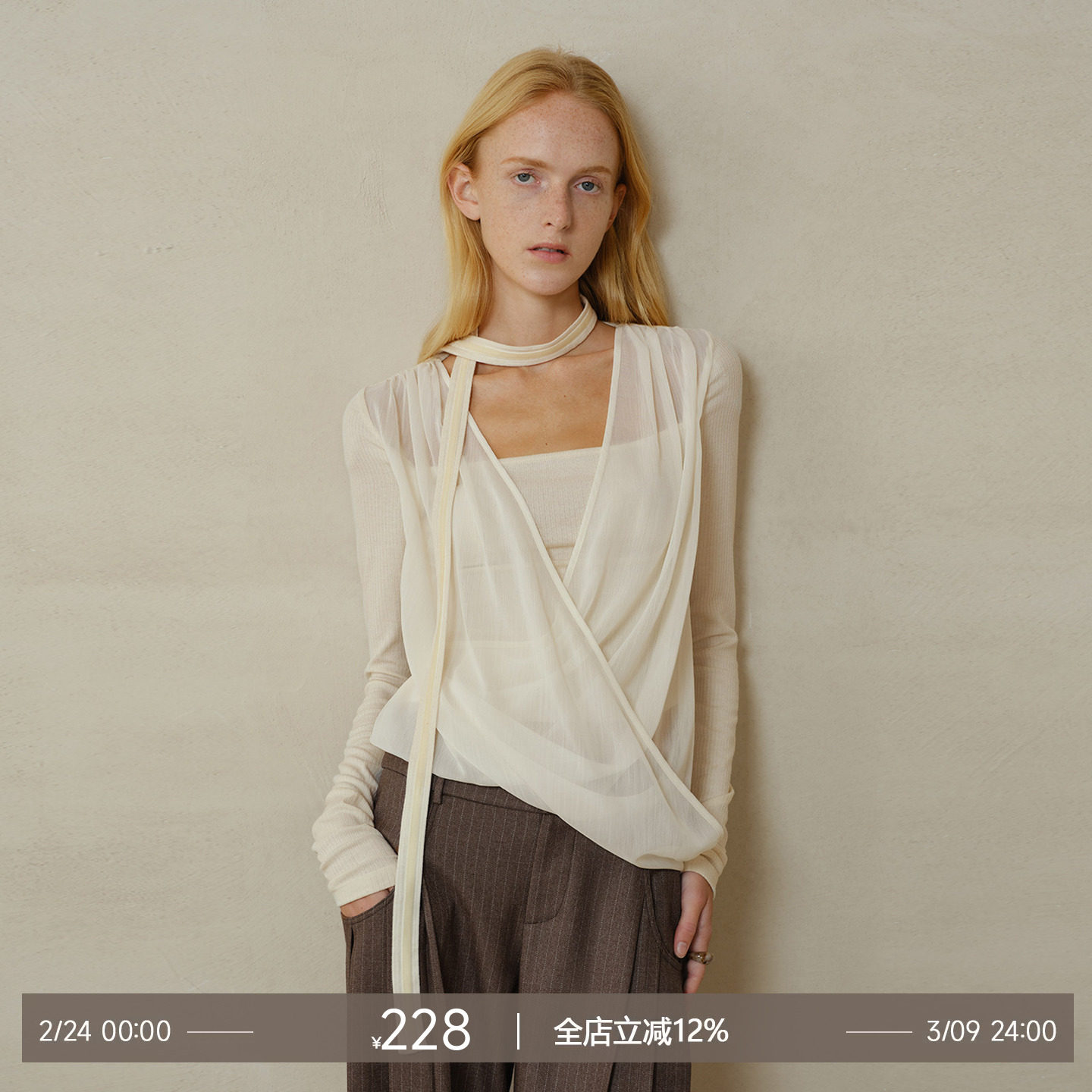 Someone Sometimes original draped overlapping mesh fake two velvet halterneck wool knit tops