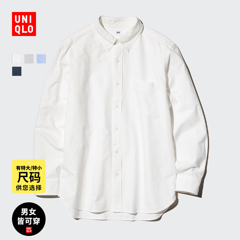Uniqlo men's and women's Oxford spun shirts long-sleeved shirts casual plain casual commuter 478086 475998